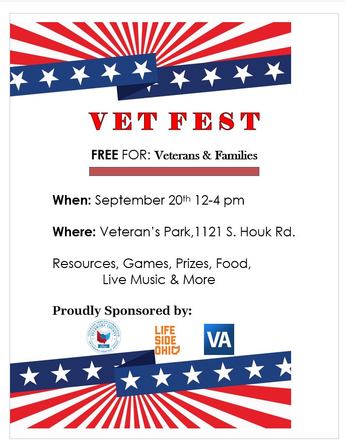 Featured September 20 @ 12:00 pm - 4:00 pm VET FEST: Veteran Fall Festival Veteran's Park 1121 S Houk Rd, Delaware Free